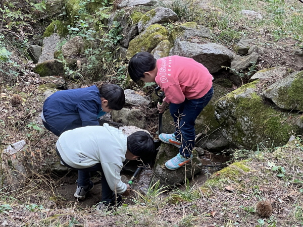 컵라면도 먹고, 간식도 먹고 자유시간~~~ 가재잡으러 가는팀, 개울 보수작업하러가는팀. 아직도 개구리가 겨울잠 안자고 우리 친구들을 반겼다고 하네요.
