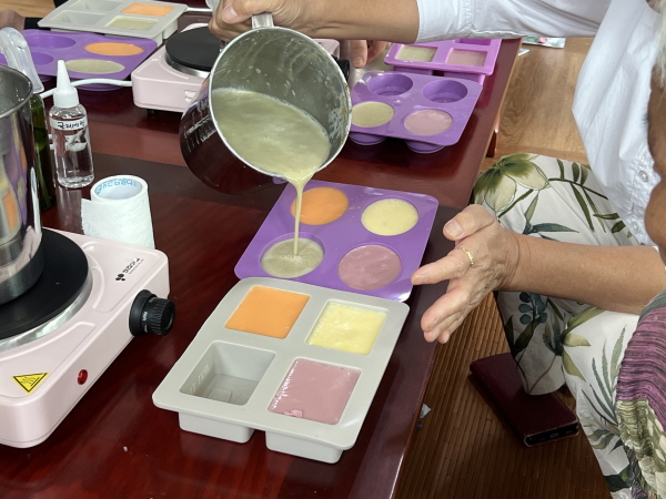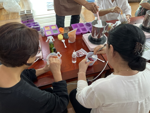 오손도손 비누베이스 자르며 담소나누며 하하호호~즐거웠던 비누만들기 시간!