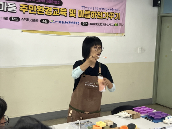 16일에는 동구 신촌동에서 18일에는 생명의숲 교육실에서 각각 진행했는데요, 이날은 마을주민분들께서 기존에 요청하셨던 친환경비누를 함께 만들었답니다.