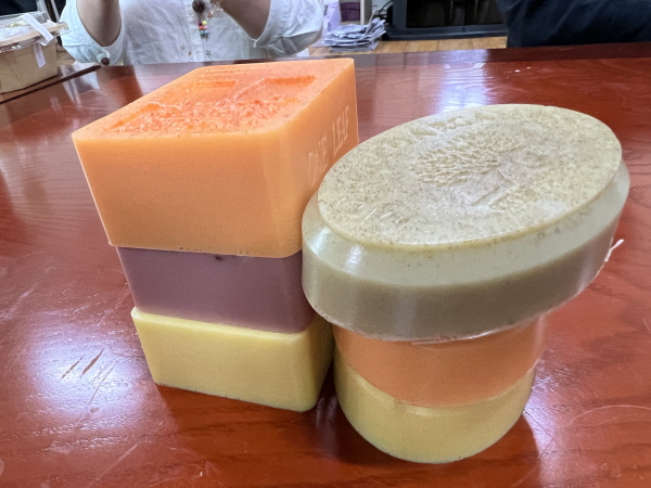 파프리카, 쑥, 단호박, 백련초 천연가루를 넣어 만든 색깔도 예쁜 친환경비누를 만들었어요.